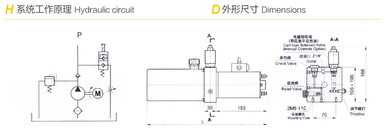 此液壓動力單元由小排量齒輪油泵,微型直流電機,中央 油路閥塊,液壓閥,油箱等零部件組合而成,是典型的液壓上升, 重力下降回路。電動卸荷閥帶有手動放油裝■以無電時設備的正 常下降,下降速度可由節流閥調節.本系列產品功率小,流量小,體 小,廣泛用于小型升降平臺,手術臺,病床,輪椅等醫療器械中。